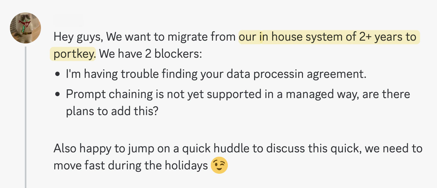 After evaluating 17 different platforms, this AI team replaced 2+ years of homegrown tooling with Portkey Prompts.