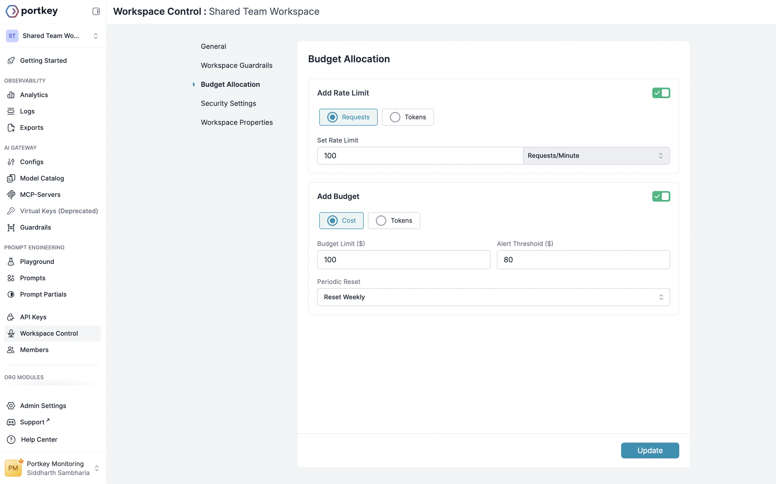 Set Workspace Budget and Rate Limits using Portkey Admin API