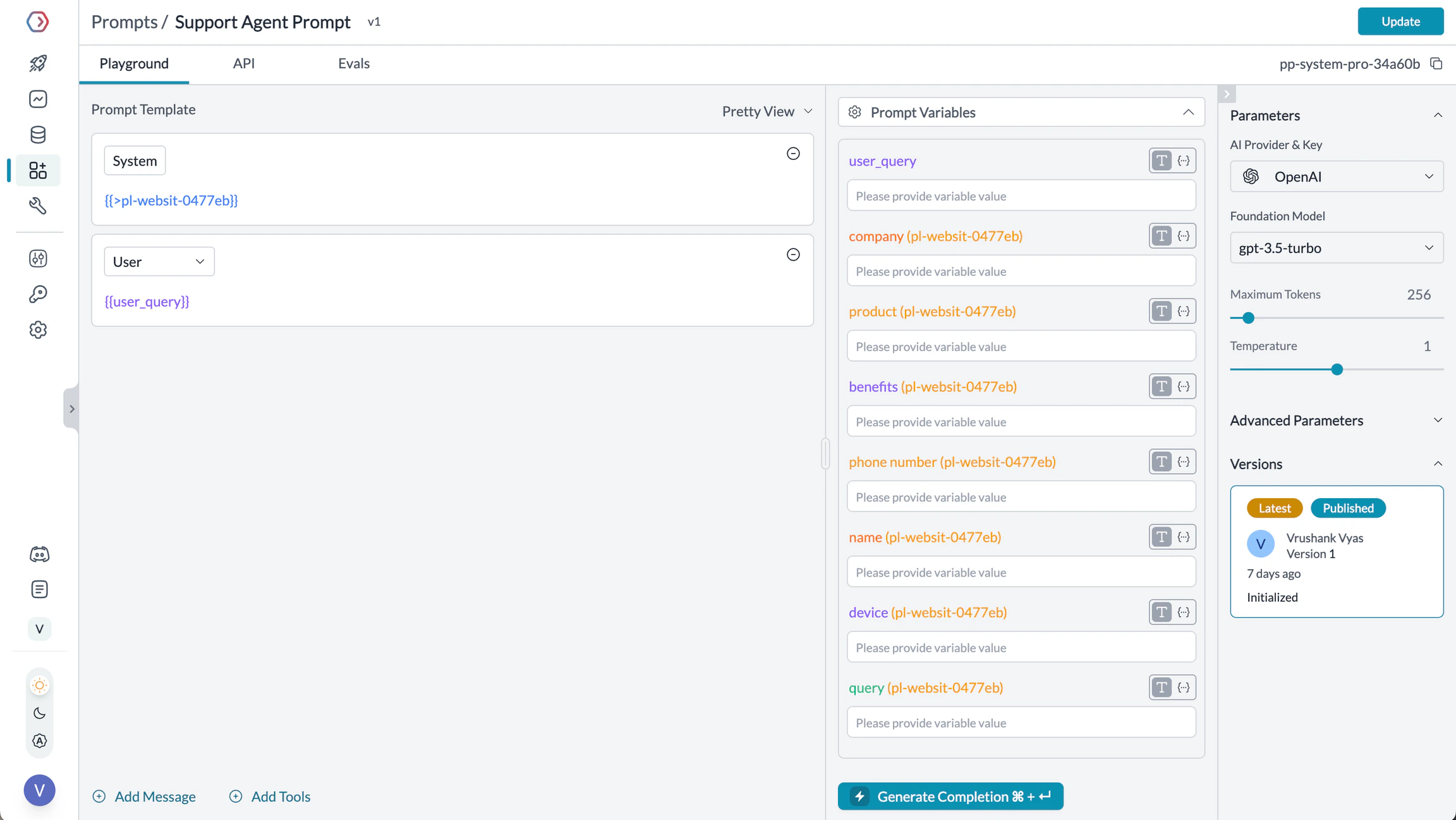 Now that you understand how to use Prompt Partials, explore these related features:- Prompt Playground - Create and test prompts using your partials