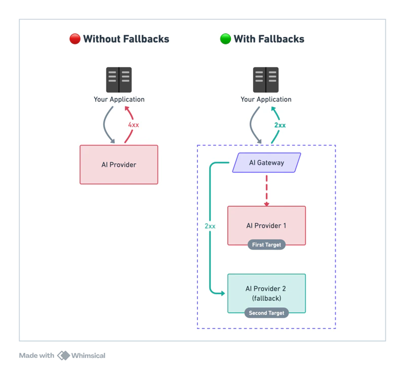 - Keep an eye on your usage with each LLM. Depending on your fallback list, a single request could result in multiple LLM invocations.