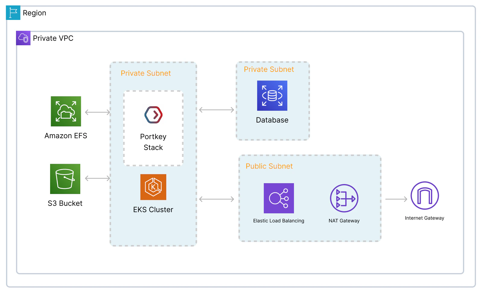 | Cache (Prompts, Configs & Virtual Keys) | Elasticache or self-hosted Redis | Deploy in the same VPC as the Portkey Gateway. |
